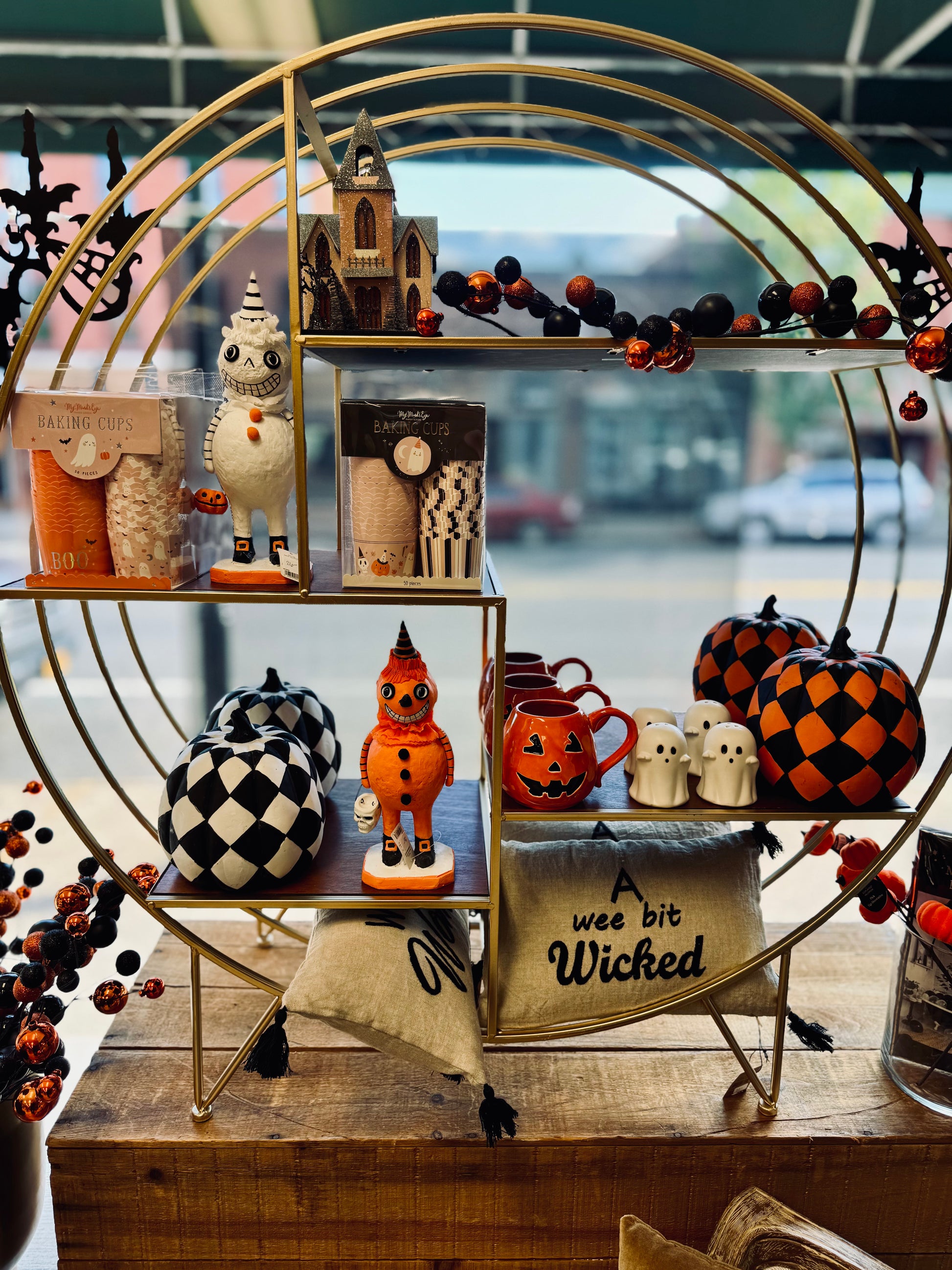 12" Paper mache retro Halloween friends. Tissue collar and hat.