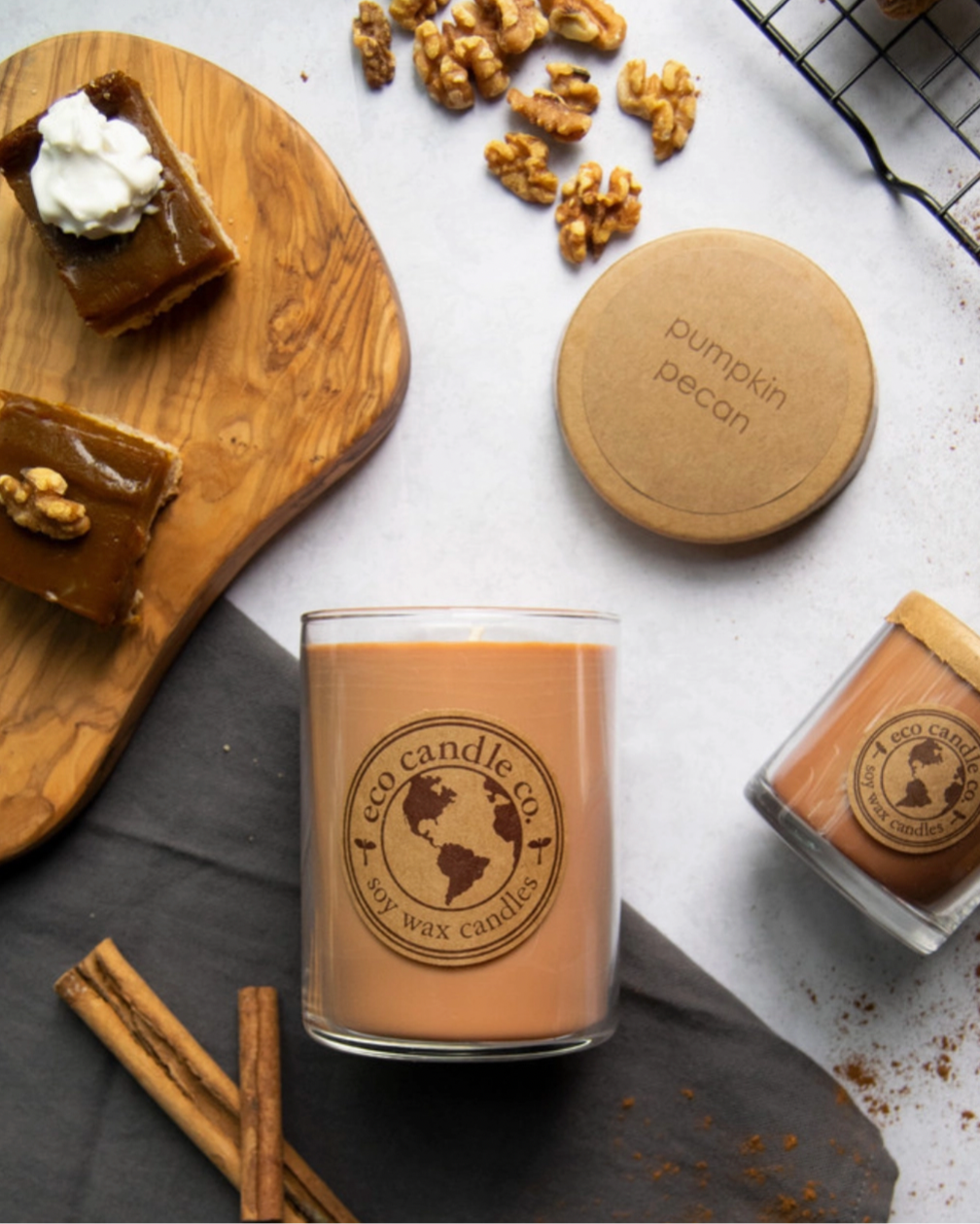 16 ounces of eco-goodness packed into a recycled glass jar with kraft label and paper lid.