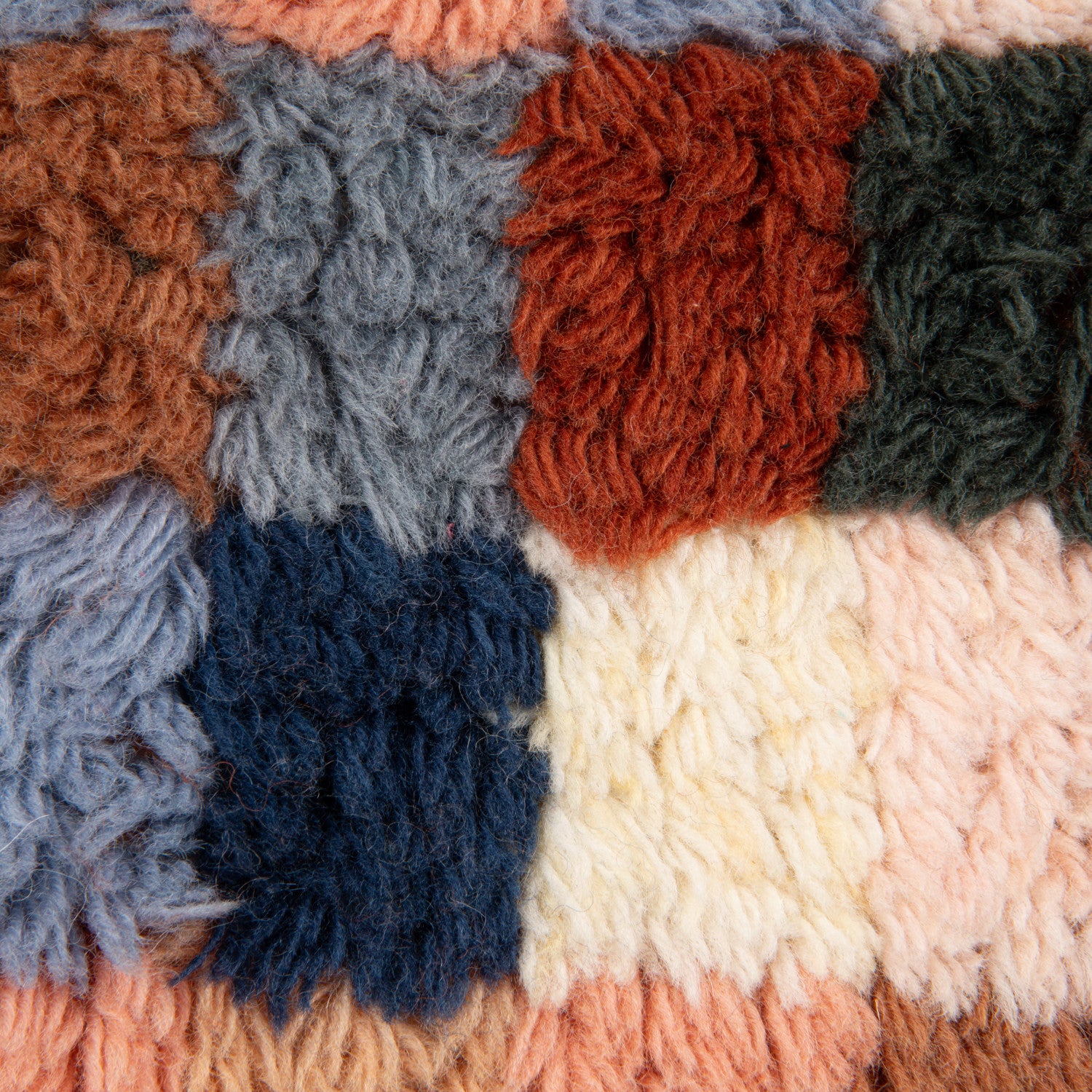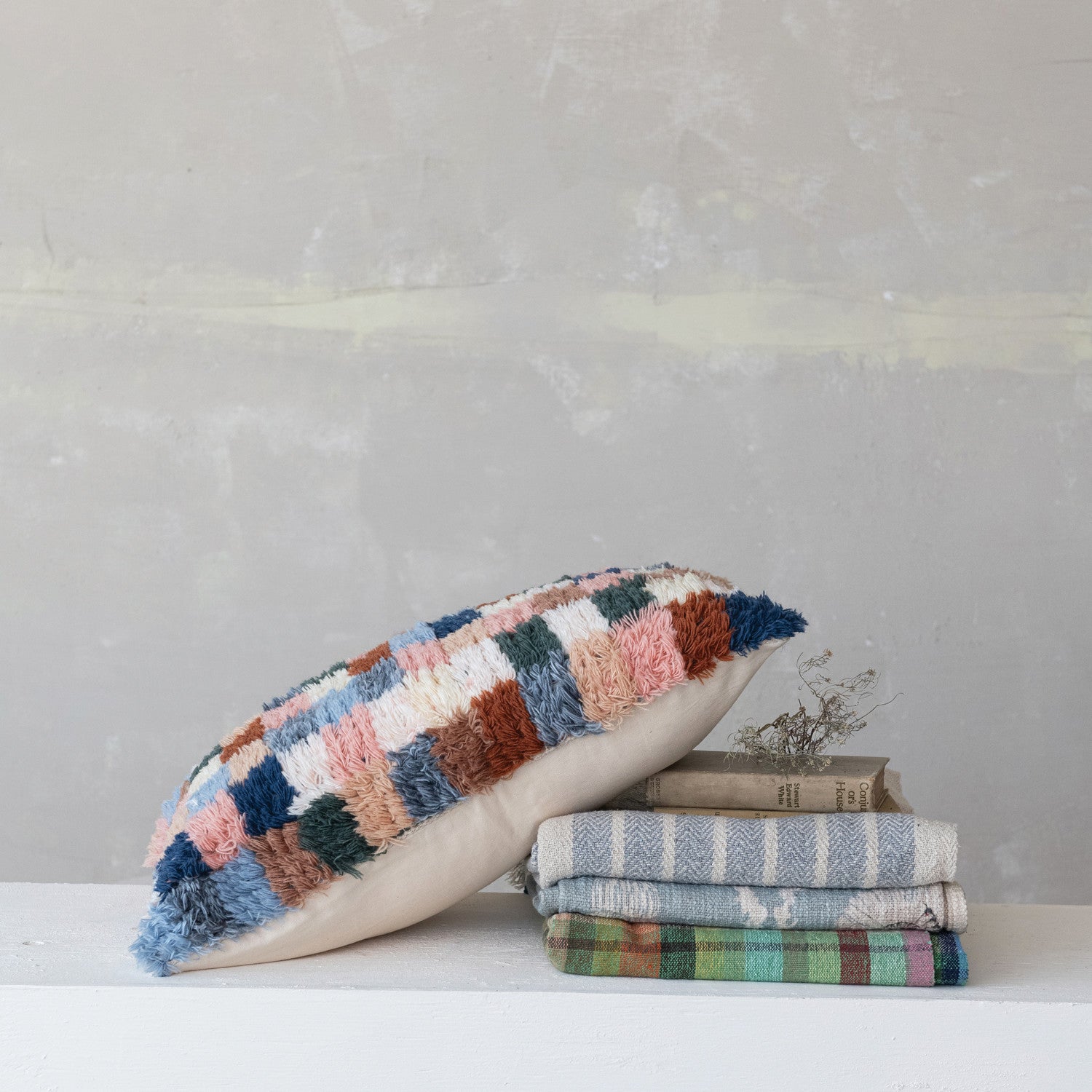 24"L x 16"H New Zealand Wool Tufted Checkered Lumbar Pillow w/ Cotton Back, Multi Color