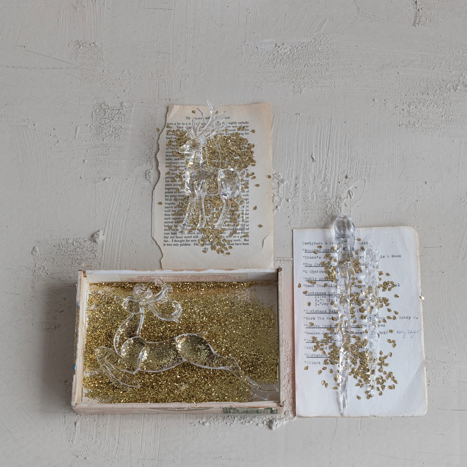 6-1/2"H Plastic Deer Ornament Iridescent Finish, 2 Styles