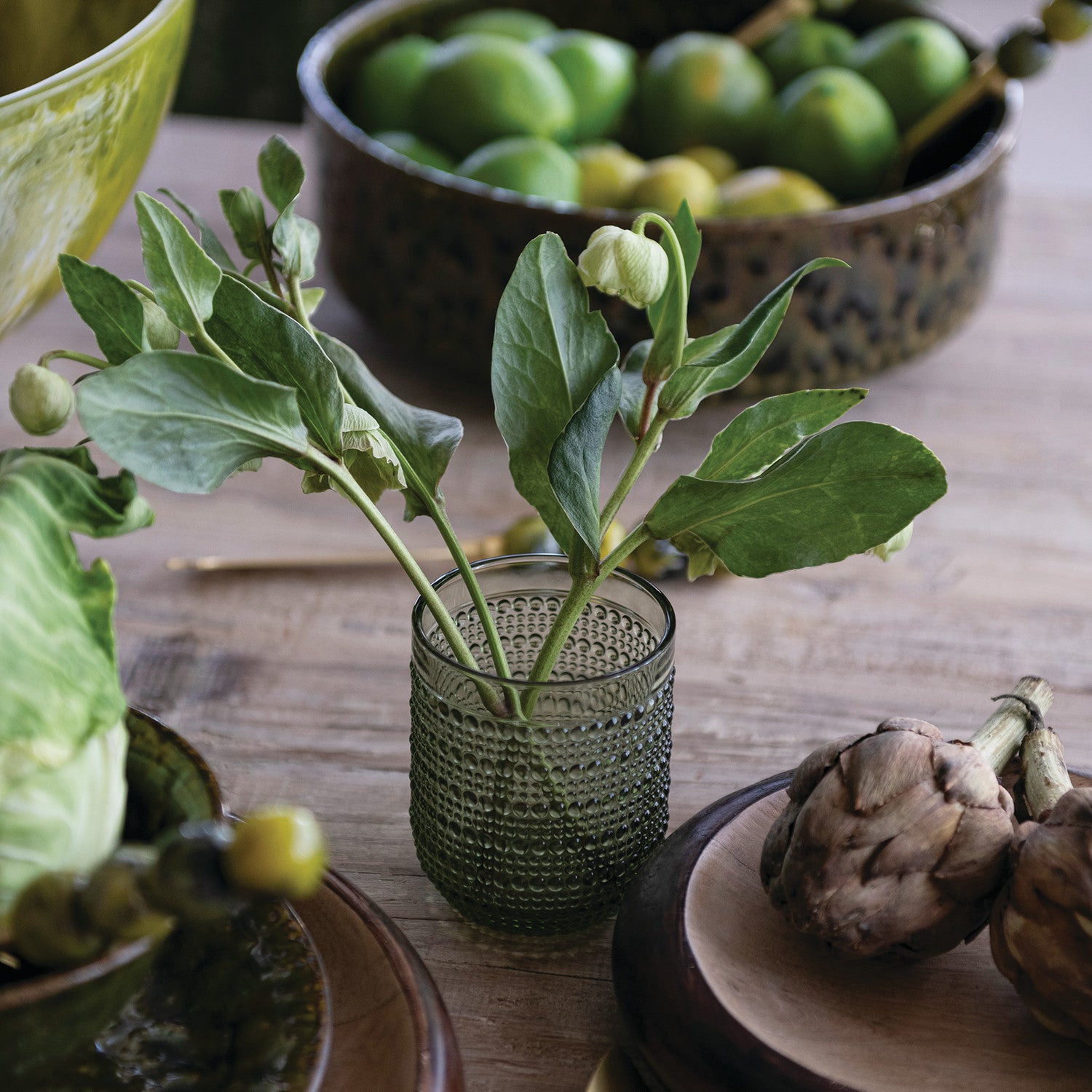 3" Round x 5"H 12 oz. Drinking Glass w/ Raised Dots, Green