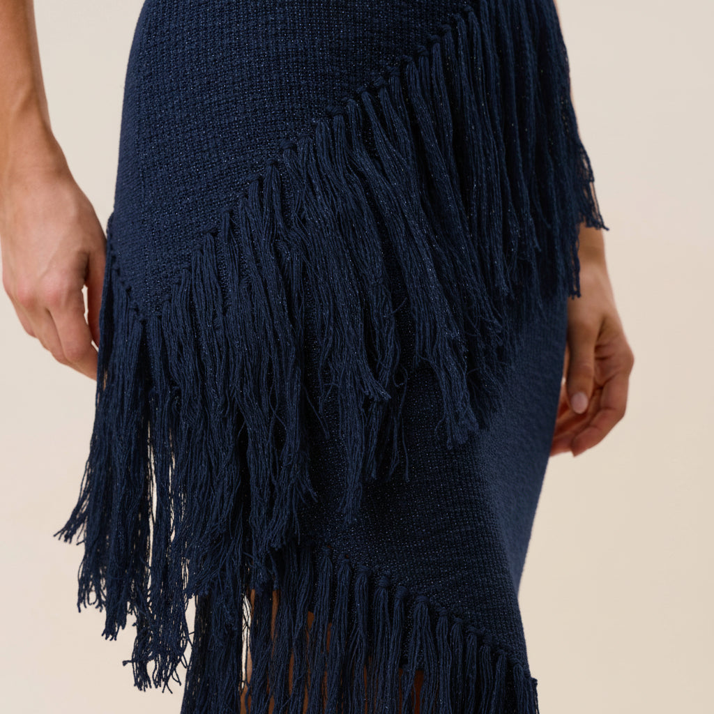 Able -Brooklyn Asymmetric Fringe Midi Dress