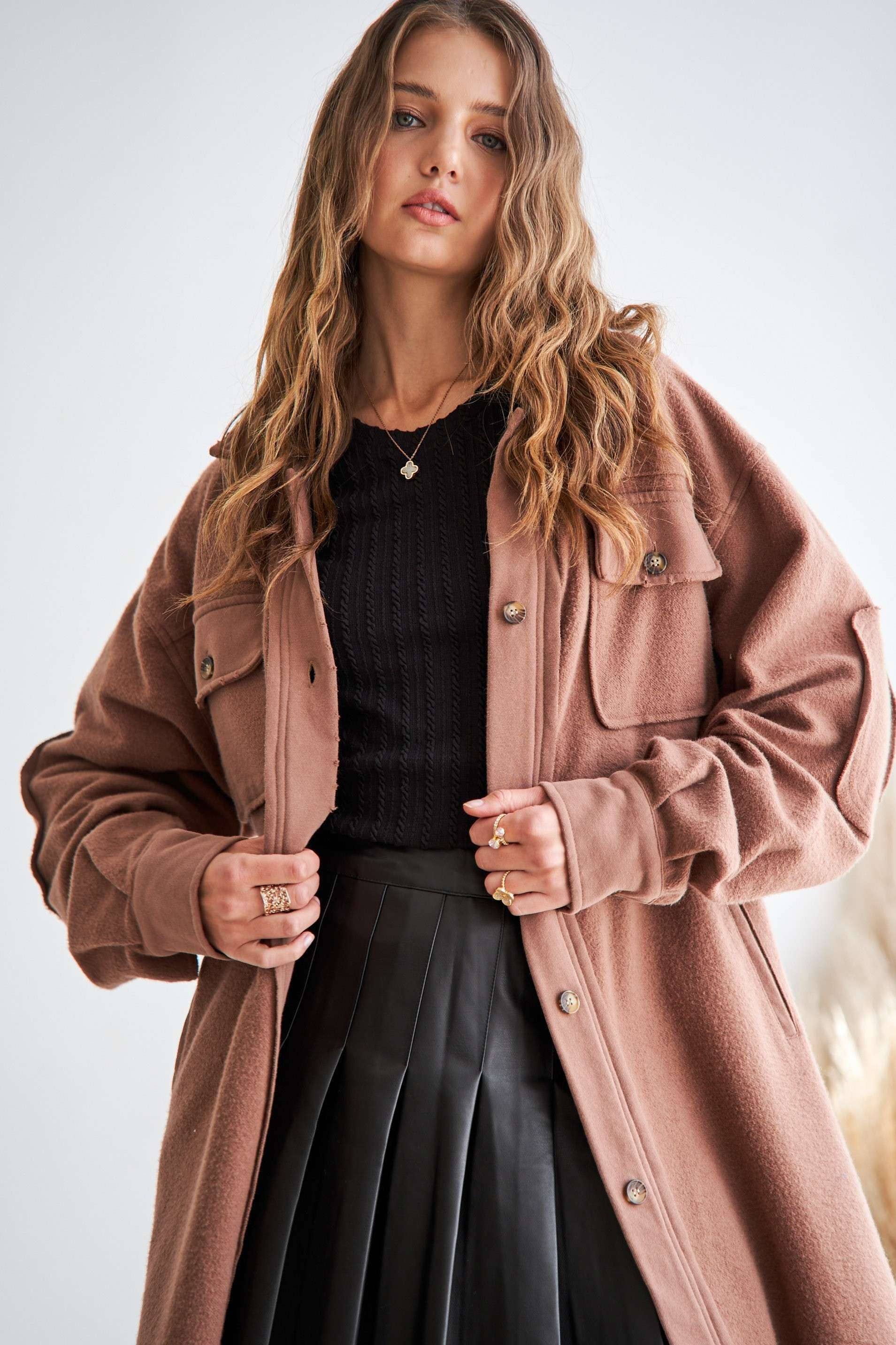 LONG SLEEVE BUTTON DOWN ELBOW PATCH LONG SHIRT JACKET WITH LIP POCKET
