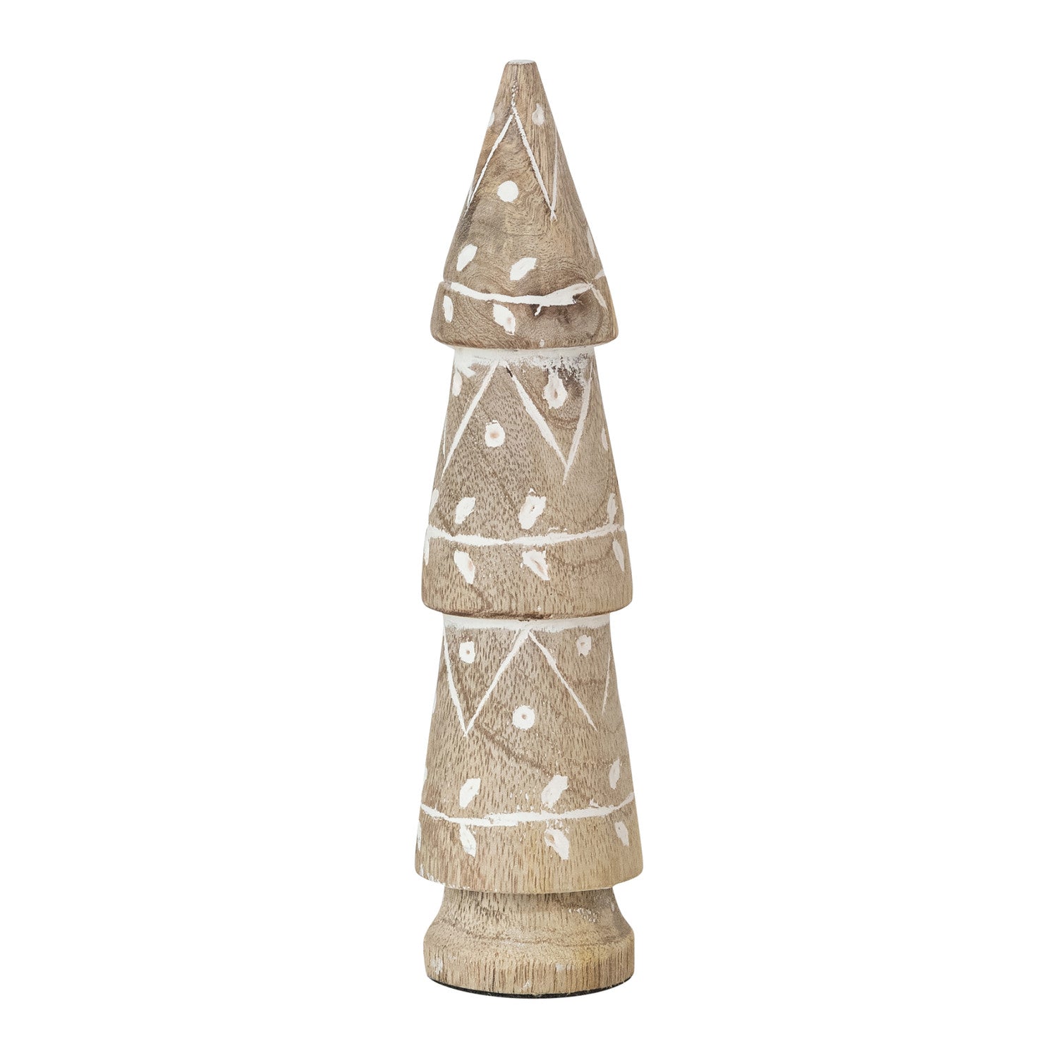 1-3/4" Round x 7-1/2"H Hand-Carved Mango Wood Tree w/ Design, Whitewashed