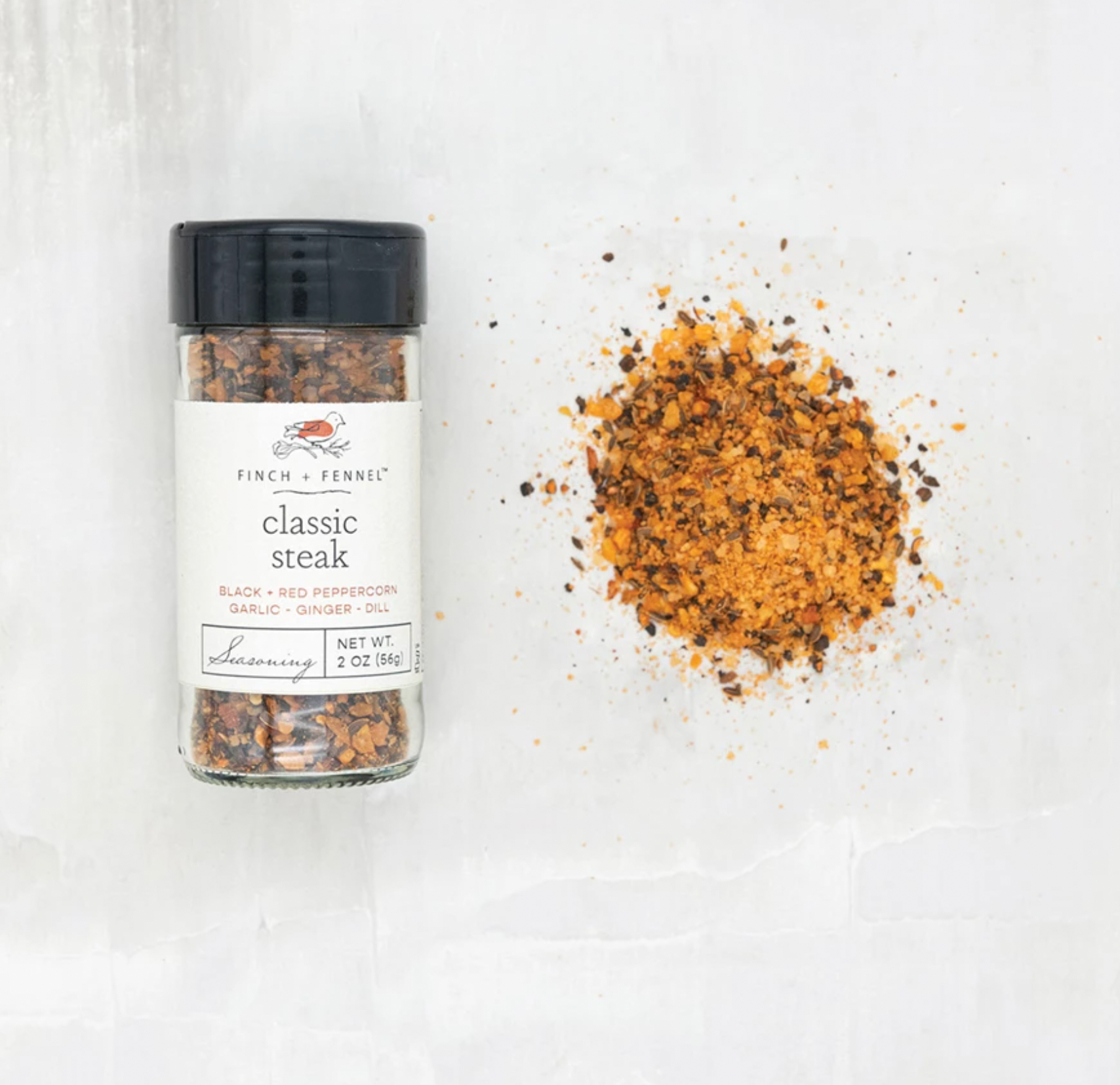 Classic Steak Seasoning is an all-purpose blend to add mouthwatering flavors to elegantly simple grilled and roasted meats. This combination of garlic, red pepper flakes, salt and other premium spices are delicious on roast or grilled meat and potato dishes. Click here for recipes + product uses!