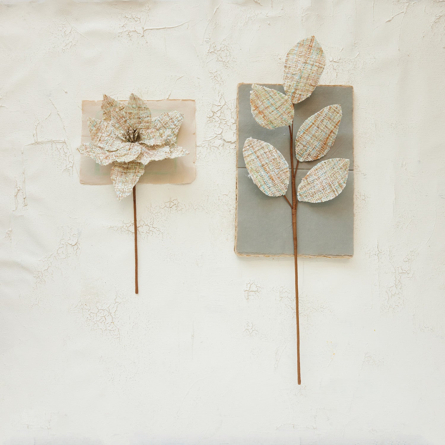 28"H Polyester Natural Magnolia Spray Plaid Fabric