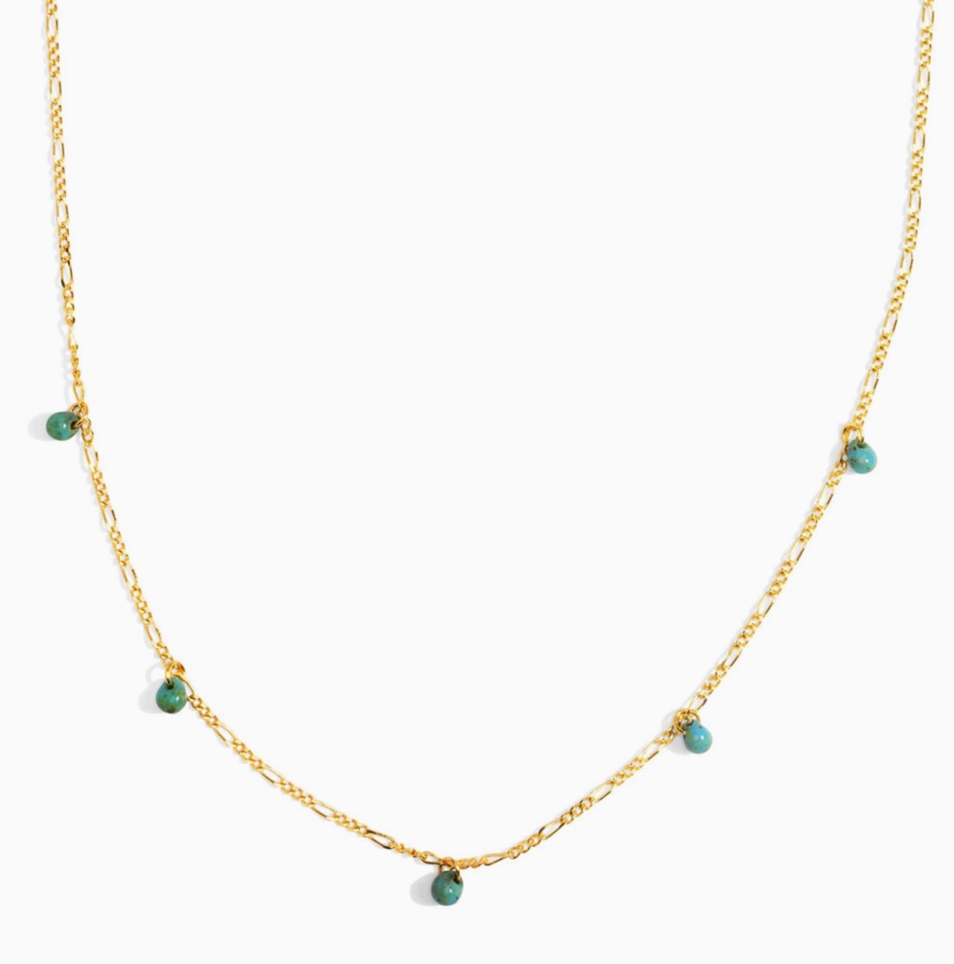 This delicate necklace is lovely worn alone or layered with another piece as we did in our shoot with Zoe at the Sonoma Mission. Delicate 16" chain, 14k gold over brass, with five stations of Miyuki Japanese seed beads. Designed and assembled in our Sonoma California studio.