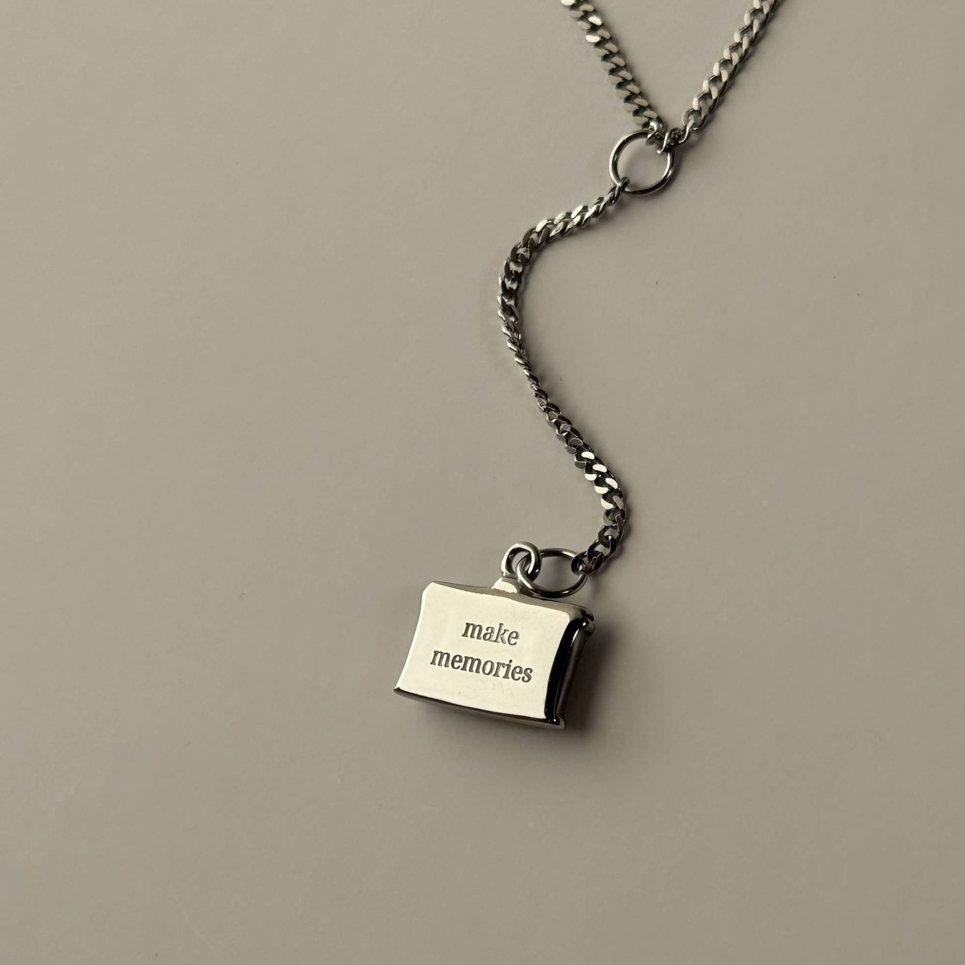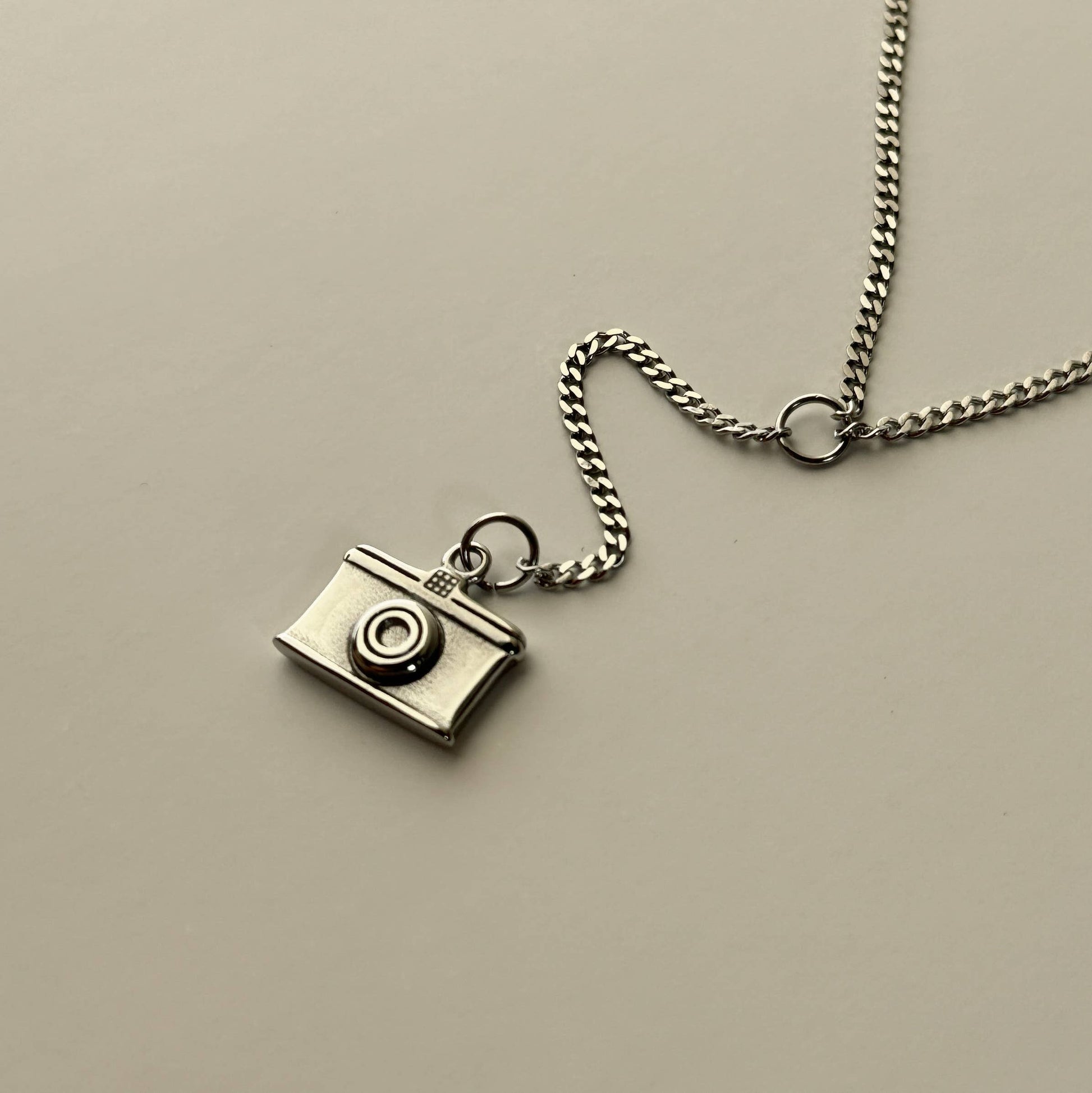 Capture your memories with this beautiful necklace featuring a camera pendant. The T-shaped design adds a touch of elegance, while the engraving on the back serves as a reminder to cherish every moment.