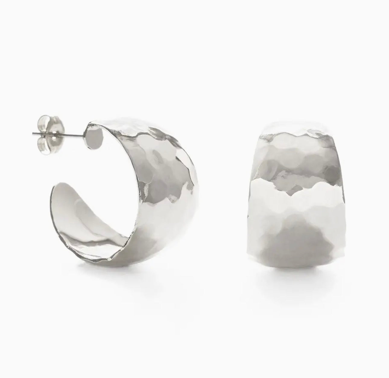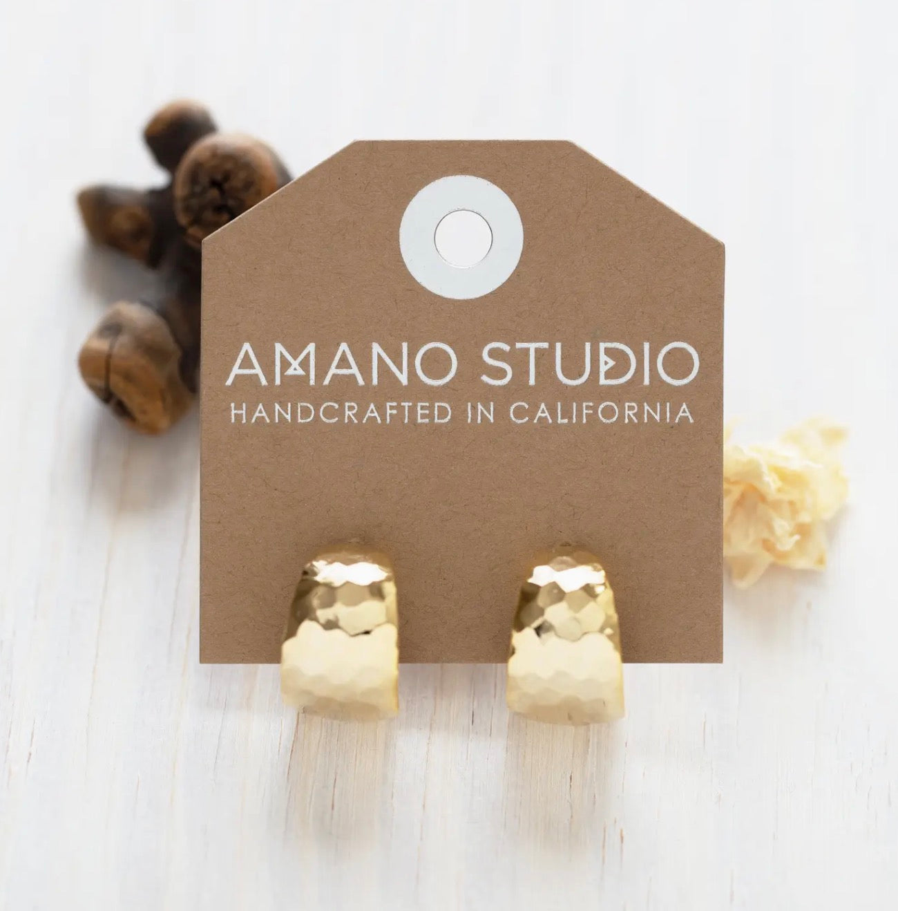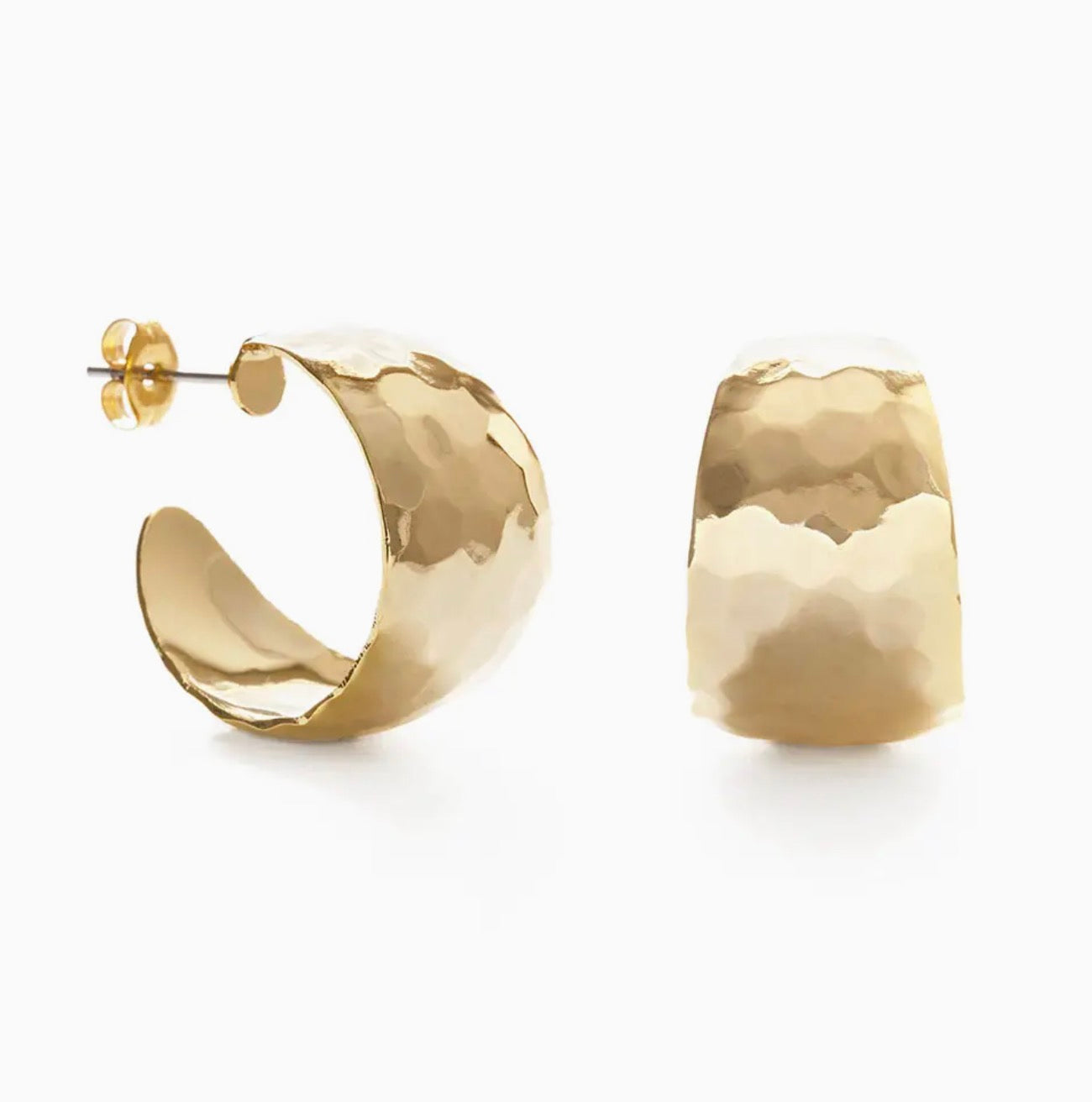 These bold hammered hoops are really genuine American vintage! They are newly minted with the original tooling and molds from the 80's. They make a bold statement with a hammered texture that gives them a handcrafted look. They have surgical steel posts and are 14k gold plated brass. 100% made in the USA.