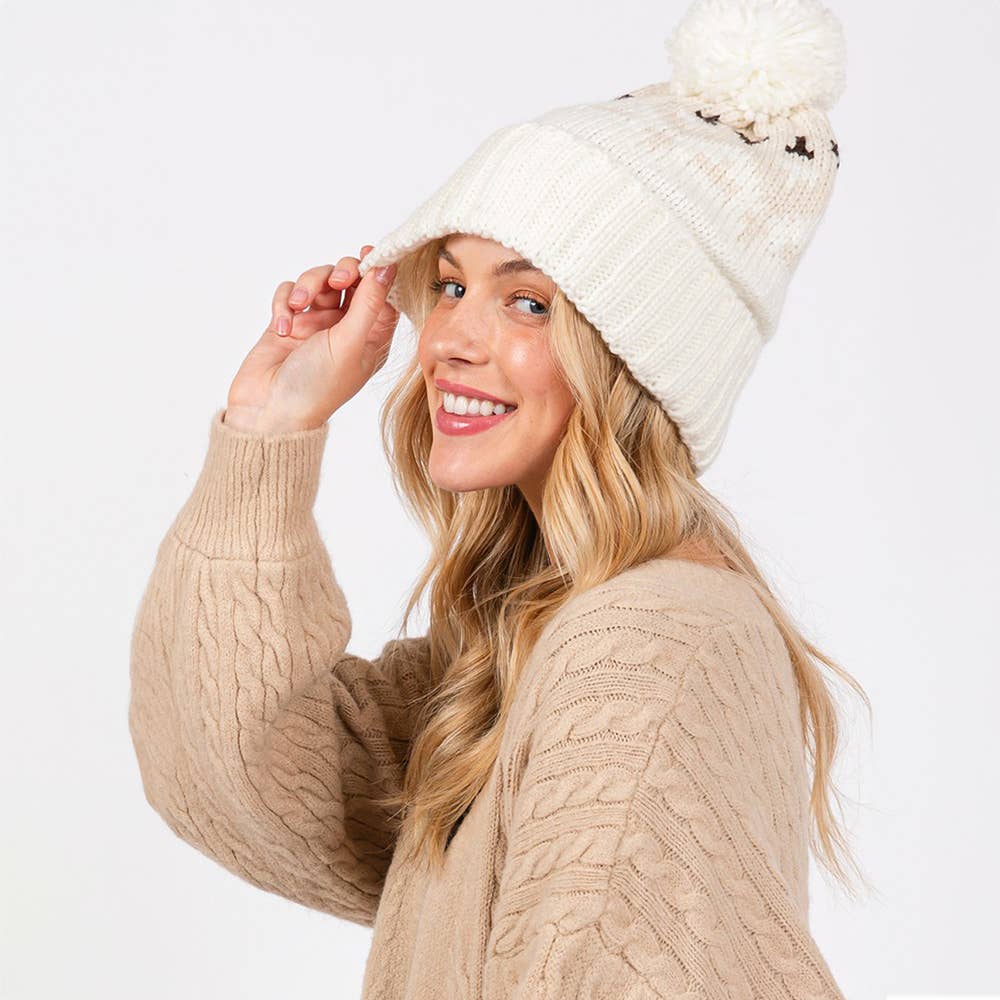 Acrylic Embrace cozy style with this patterned knit beanie featuring a playful pom-pom.