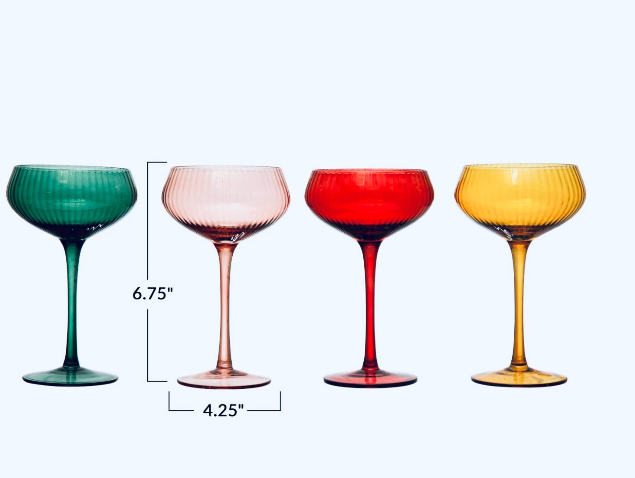 4-1/4" Round x 6-3/4"H 8 oz. Stemmed Fluted Coupe Glass, 4 Colors
