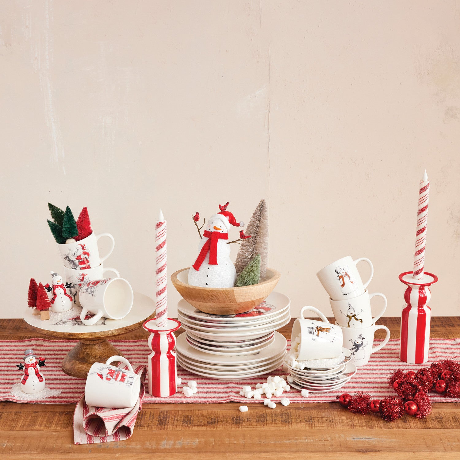 5" Round Stoneware Dish w/ Santa Image, Red, Black & White, 4 Styles ©