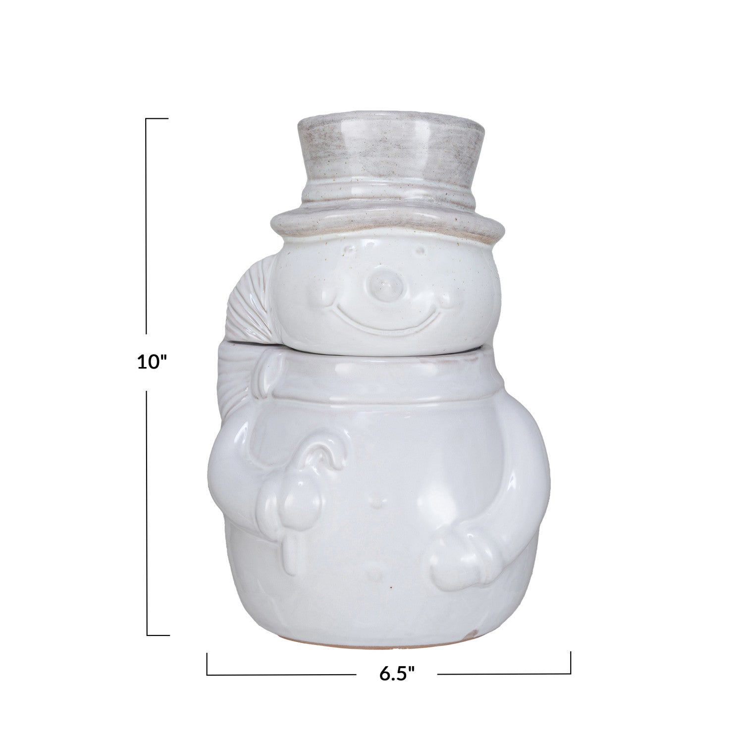 6-1/2"L x 6"W x 10"H Stoneware Snowman Shaped Cookie Jar, Reactive Glaze, Antique White (Each One Will Vary)