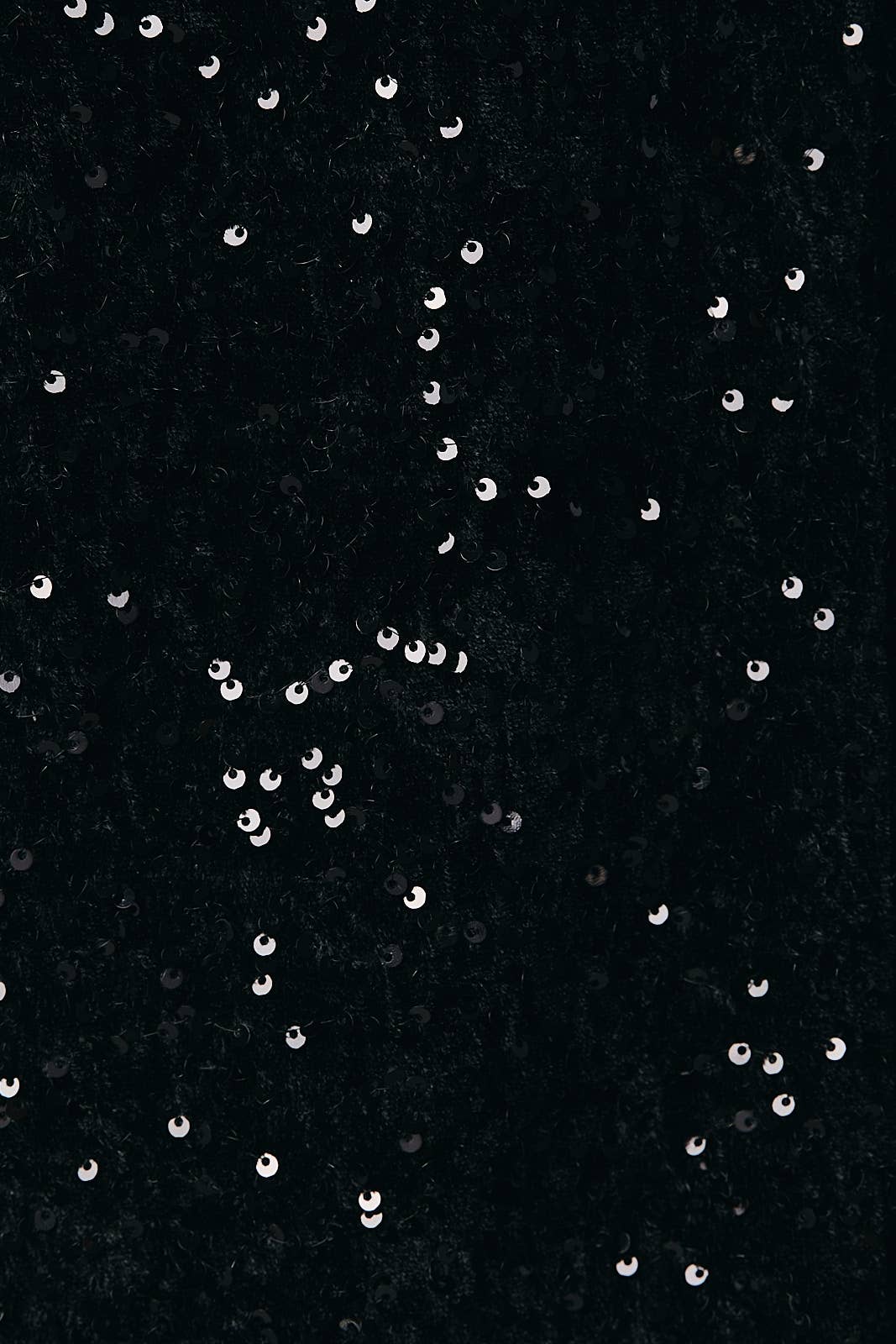 HIGH NECK COVERED SHOULDER SEQUIN VELVET TOP