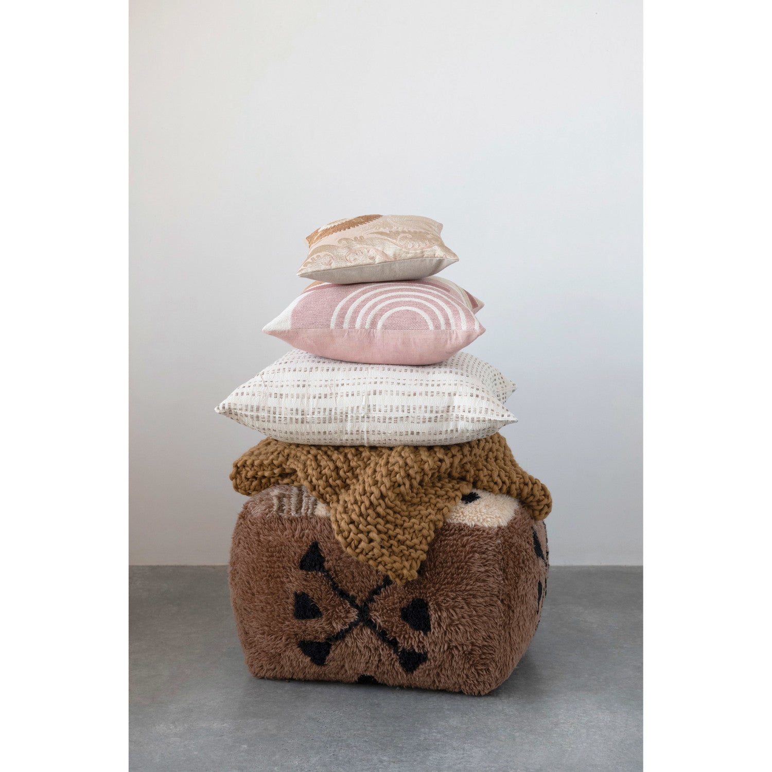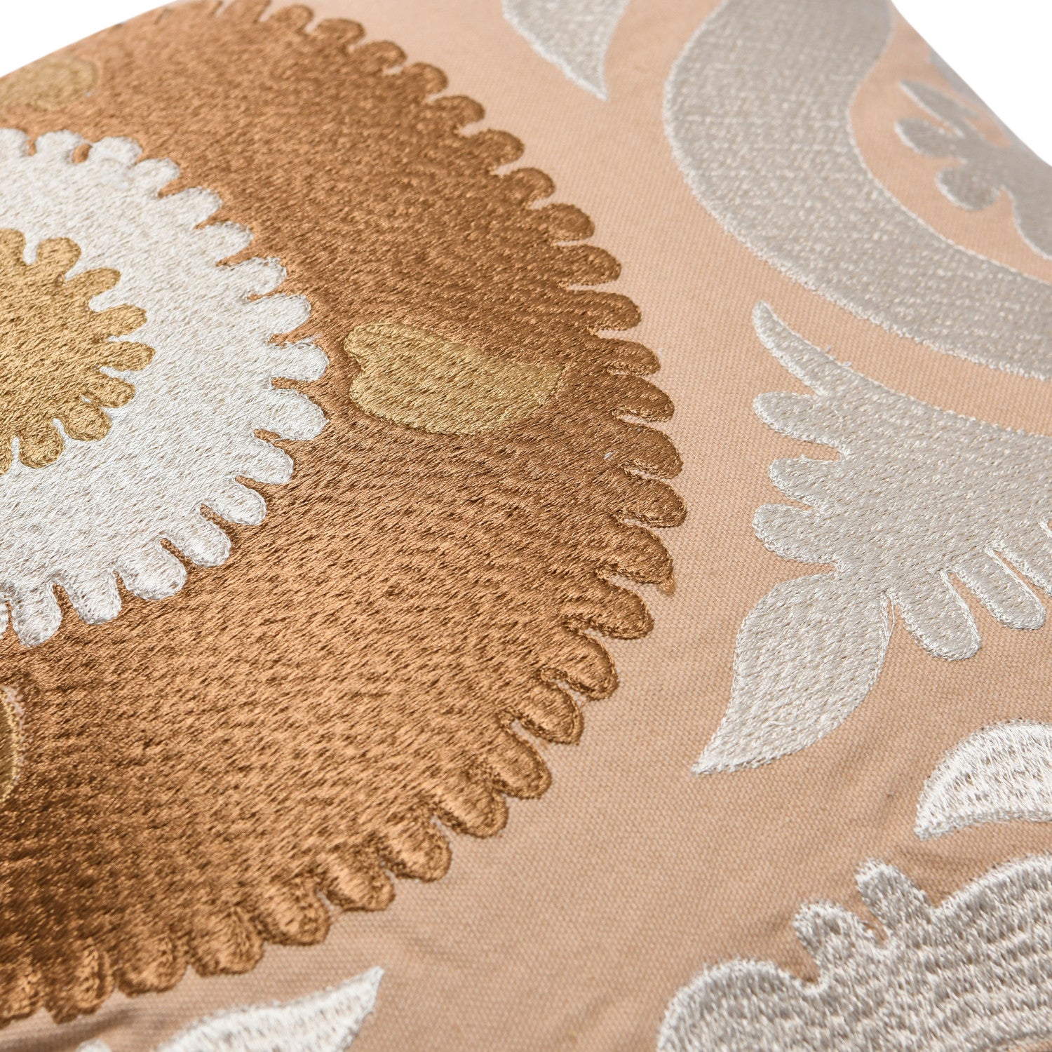 This bold, global throw pillow features a striking suzani design embroidered on durable woven cotton. Multicolor cotton throw pillow with suzani embroidered pattern; Natural cotton encasement on back.