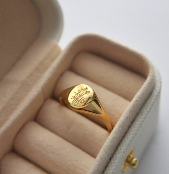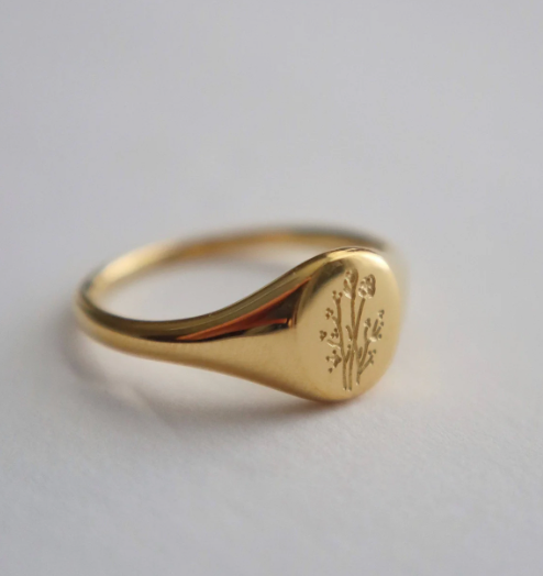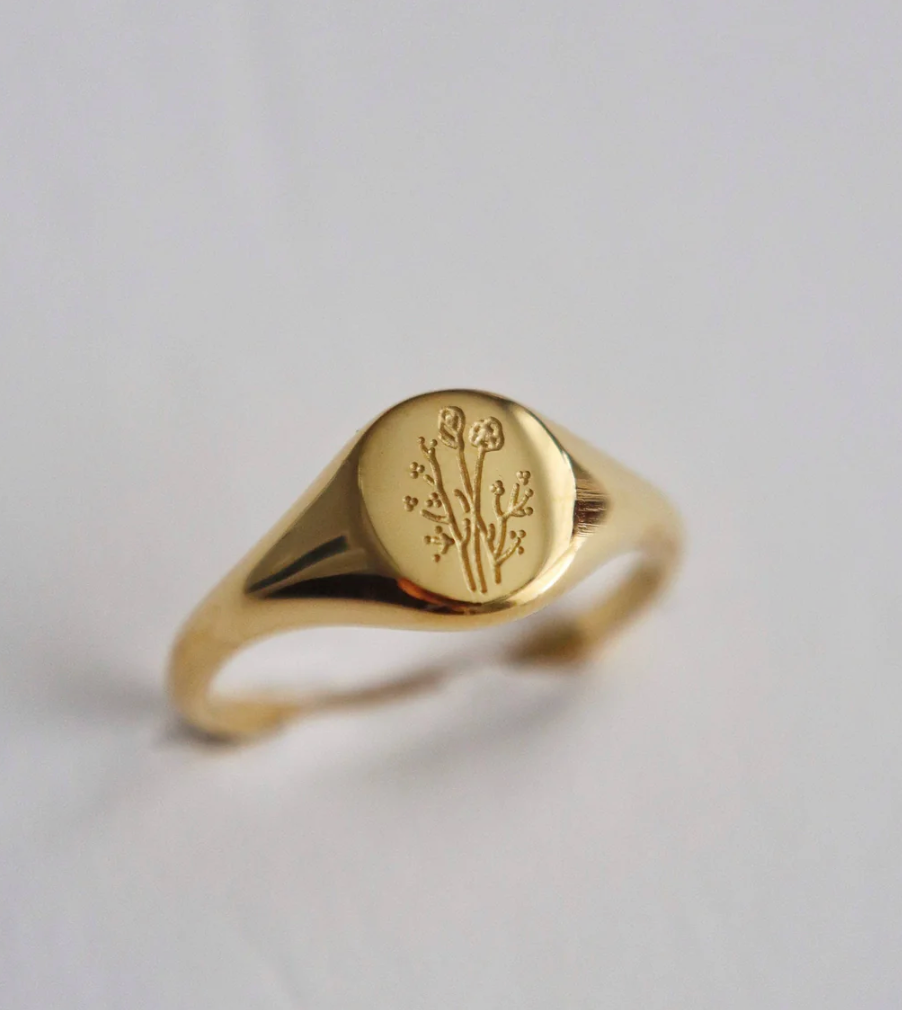 A timeless signet ring featuring a delicate wildflower engraving. Minimal, meaningful, and perfect for everyday wear. -stainless steel, 18k gold plated